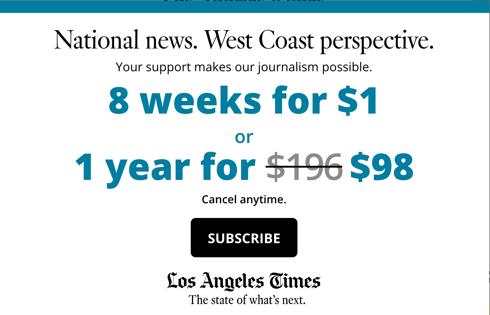 Authored a signature tagline for the Los Angeles Times paywall, designed to convert casual readers into loyal subscribers. This work successfully bridged the gap between performance marketing and lifestyle branding, evolving from a digital pop-up into a line of consumer merchandise.